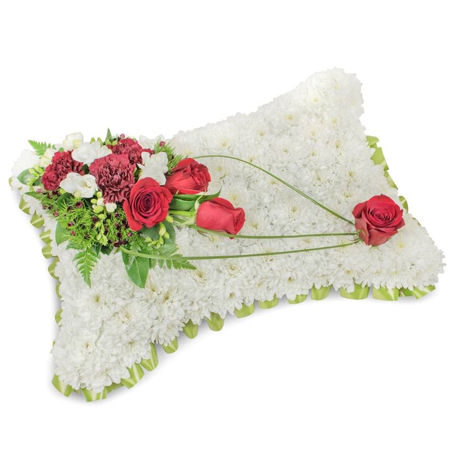 Show your support and sympathy with our Sympathy Flower Arrangement, featuring an exquisite mix of white chrysanthemums, vibrant red roses, elegant white freesias, and deep red carnations. Each flower is hand-selected to ensure premium quality and lasting freshness.
