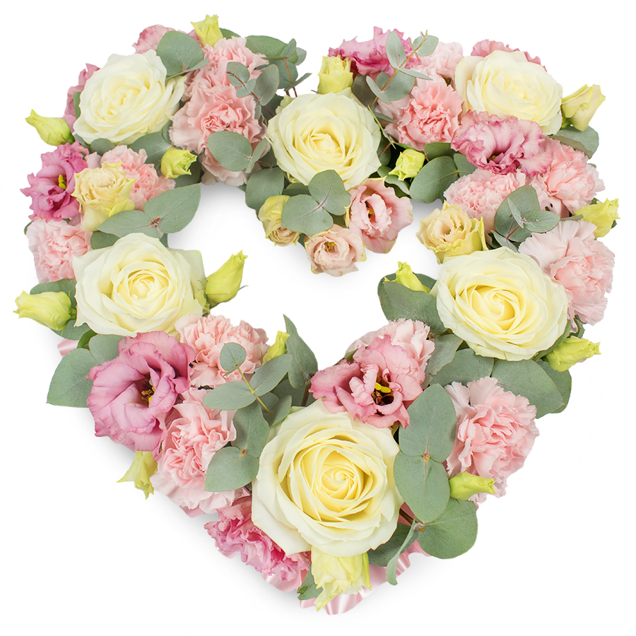 Capture the essence of heartfelt remembrance with this exquisitely arranged bouquet. Designed to inspire warmth and gratitude, the arrangement features radiant white roses, delicate pink carnations, and elegant pink lisianthus, all perfectly complemented by fresh eucalyptus leaves. Each bloom is thoroughly hand-selected at its prime, ensuring a stunning display of nature’s finest artistry.